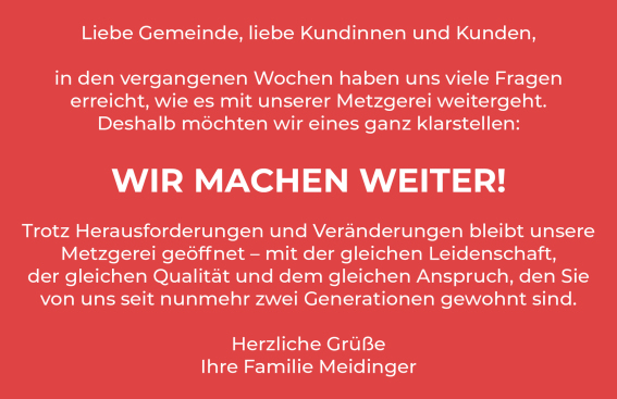 Wir sind uns der Verantwortung unserer Arbeit bewußt, anständige Lebensmittel im Sinne der Verbraucher und deren Gesundheit zuzubereiten. Aber es macht uns auch einfach Spaß, unsere Kunden mit leckeren Fleisch- und Wurstwaren zu verwöhnen sowie tolle Speisen mit herzhaftem Genuß anzubieten. Wer verzichtet schon auf ein gutes Essen, dafür ist es doch viel zu lecker …